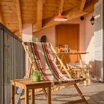A klímaberendezést biztosító szálláshely erkélyt kínál kertre néző kilátással.